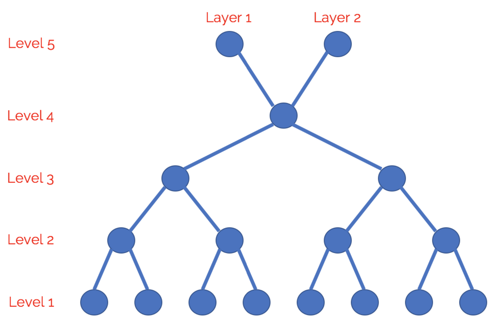 The FM structure is required to be hierarchical through levels until the final level, at which point a layer structure can be implemented, so that a single insurance contract can be applied over many layer applications. It is not possible to have lower levels split out to higher levels, they must aggregate through the levels.