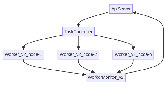 Output Collection: Similar to the v1 mode, these aggregated outputs are then collected and stored by a single ‘WorkerMonitor’ instance, which reports the final status and results back to the API server.