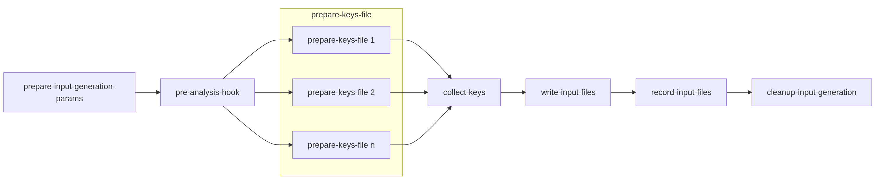 Input: Crucially, this task receives the consolidated keys lookup results (keys.csv, keys-errors.csv) and the prepared params dictionary as inputs from the preceding sub-tasks in the chain. It does not perform its own Pre-analysis-hook or keys lookup; these are prerequisites fulfilled by earlier sub-tasks.