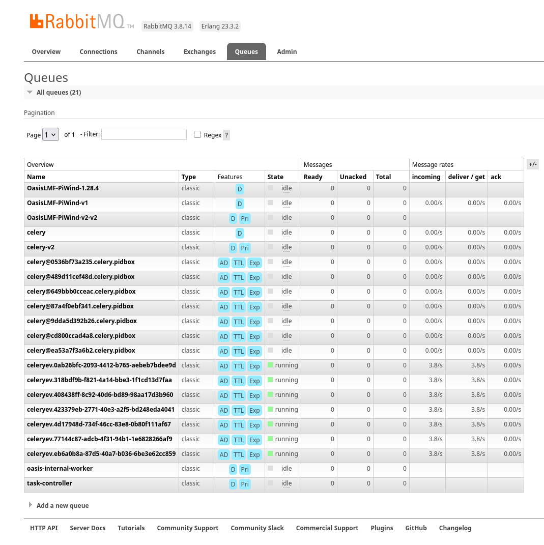 Option 2: Set the container to listen on the ‘distributed execution’ celery queue by setting the environment variable OASIS_RUN_MODE=V2 and restarting the container. This will cause the worker to listen on the new *-v2 suffixed queue.